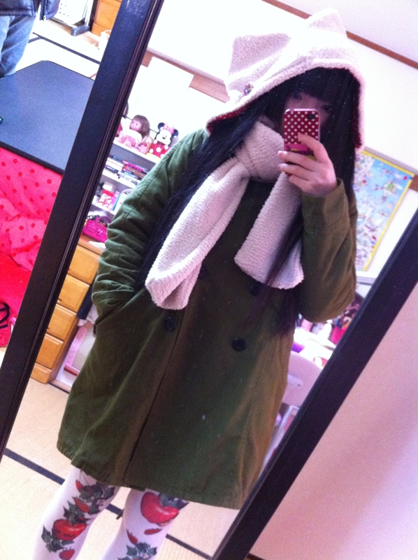 帰りにNOVAビルに寄ってKERAショップで見つけた猫耳マフラーを誘惑に負けて買う。
