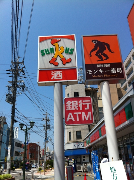 サンクスとモンキー薬局の横も通り過ぎます。