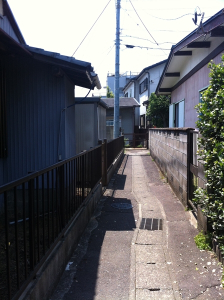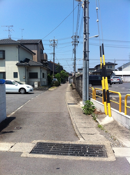 デニーズの駐車場のわきの道に入って行きます。