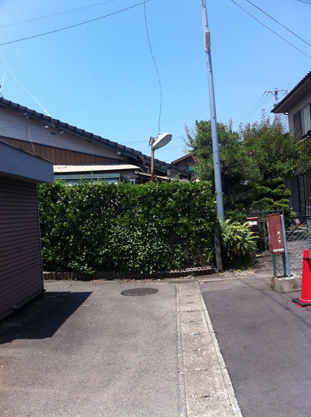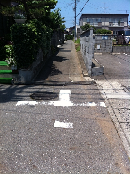 つきあたると少し広い道に出ます。左に曲がってください。