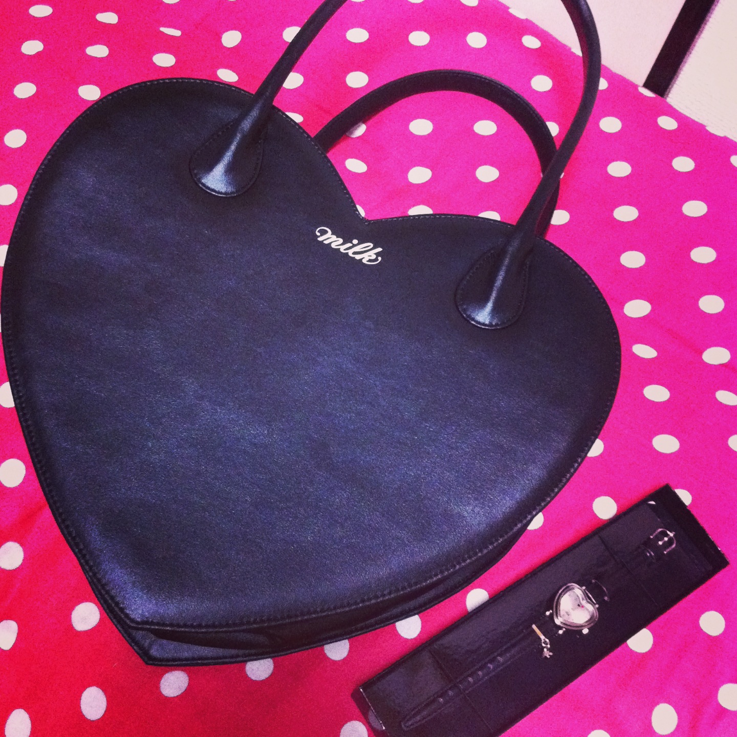 MILKのハートバッグは今や大抵のおなごが持っているし(私の周り調べ)、今更買っても絶対誰かと被るし、これぞまさに没個性…アイデンティティの崩壊…いや別に個性的な私を目指しているわけでもないけど、ハートバッグ持ってる子にげんぱつさんが私の真似してる!とか思われてもちょっとアレだし、かわいすぎるし私が買うべきものではない!しかしかわいい!ほしい!赤か黒がいい!